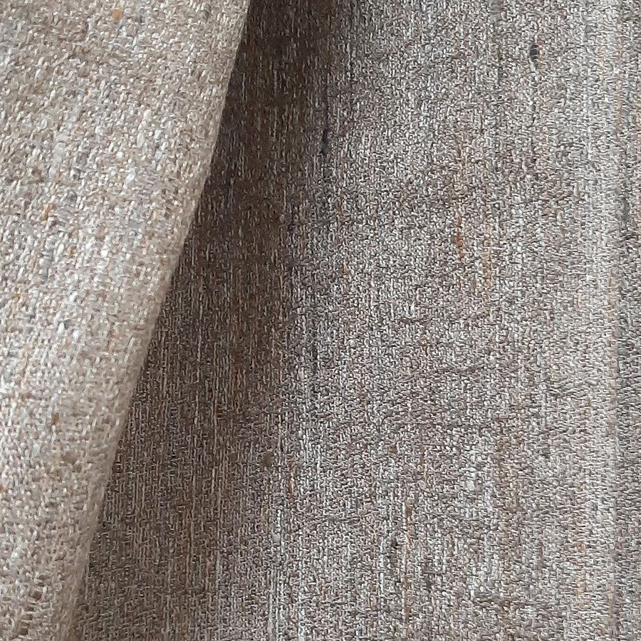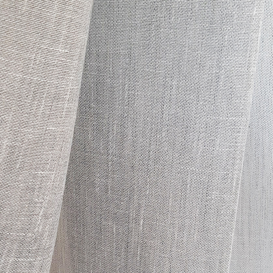 Lehký a částečně průsvitný s rustikální texturou, s podílem lnu